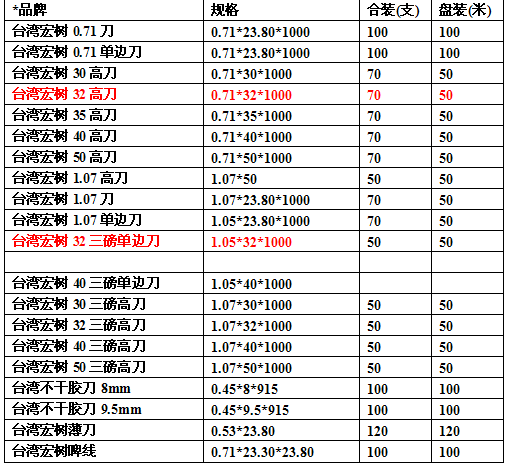 台湾HUNGSHUH模切刀特殊是特殊规格的高刀品种比较齐全。可以满足客户不同的模切要求。淬火刀口锋利耐用。是很多大中型印刷企业首选品牌。